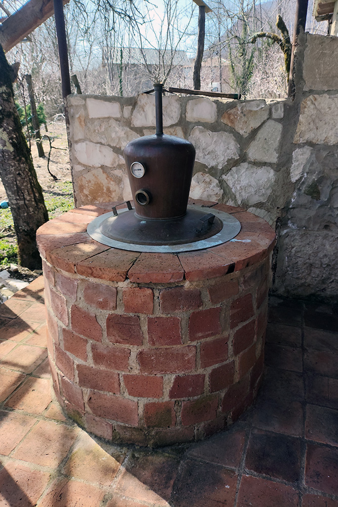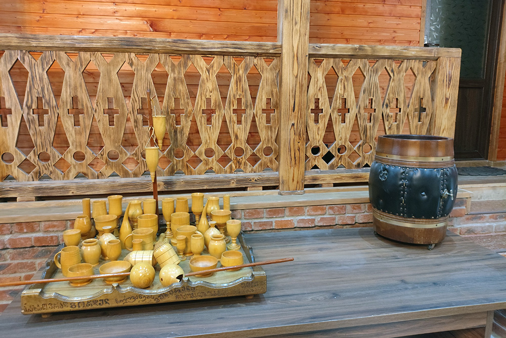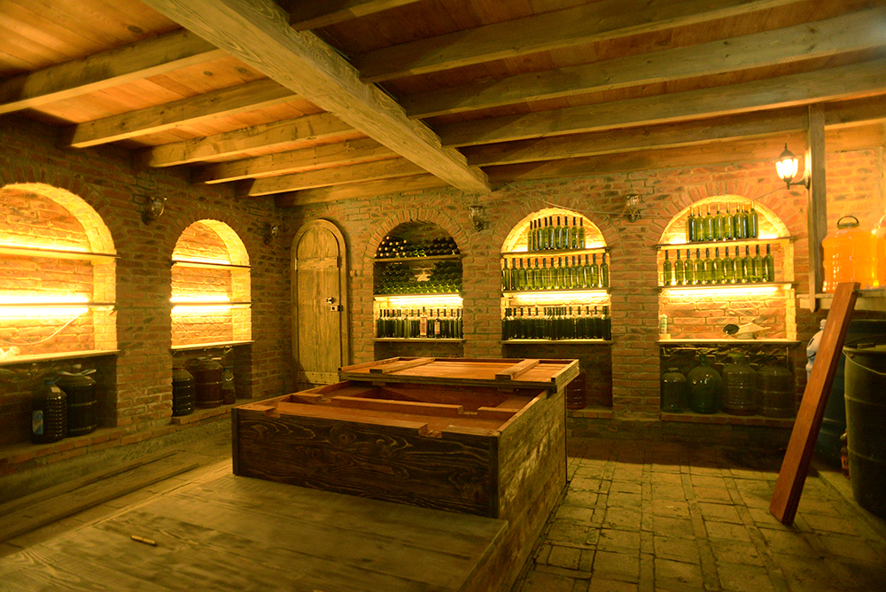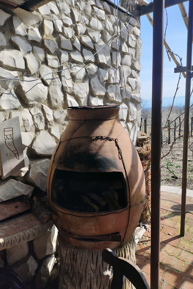 Особое зрелище – это накрытый около чури традиционный небольшой грузинский стол, процесс снятия крышки с чури и проба/дегустация вина, изъятого из чури на месте же при помощи оршимо (черпак из небольшой тыквы). В имении вы можете понаблюдать за процессом виноделия.