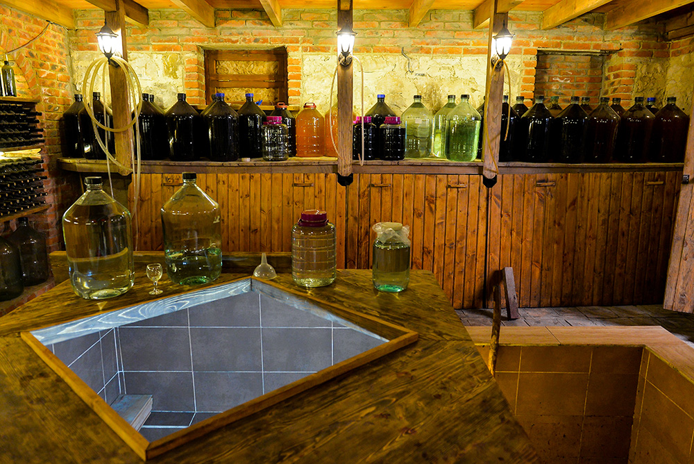 Также можете увидеть древнейший виноградный пресс, который состоит из большой каменной плиты, рычага и бруса с винтом. В имении, в соответствующее время, у вас будет возможность самим включиться в процесс изготовления вина или алкогольных напитков.